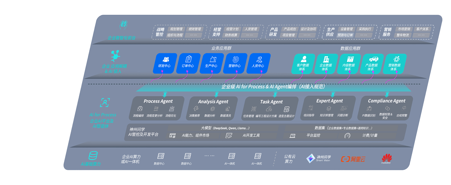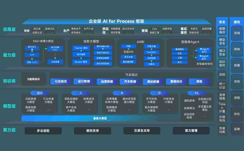 端到端的一站式AI工作空间深度融合了从企业战略规划到日常经营的全流程业务板块,,,定向解决车企内部领域多、、部门多、、、、链条长、、、场景碎片化等难题,,支持车企快速构建以AI为核心的生产力写作体系,,实现任务执行与AI能力的无缝集成与交互